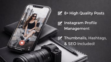 8+ High Quality posts designed for Instagram, Facebook, & TikTok, and built to help your business stay visible and relevant. (The client is required to provide video footage and/or images for us to edit and publish)